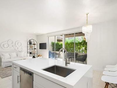 Charming 2-bedroom condo in the heart of Indian Wells, Coachella Valley! Enjoy access to a nearby community pool. Close to the famous El Paseo Shopping District. The kitchen features a central island with barstools and a dining table for four, and a queen size pullout sofa. Upstairs, two cozy sleeping spaces both with King Beds.